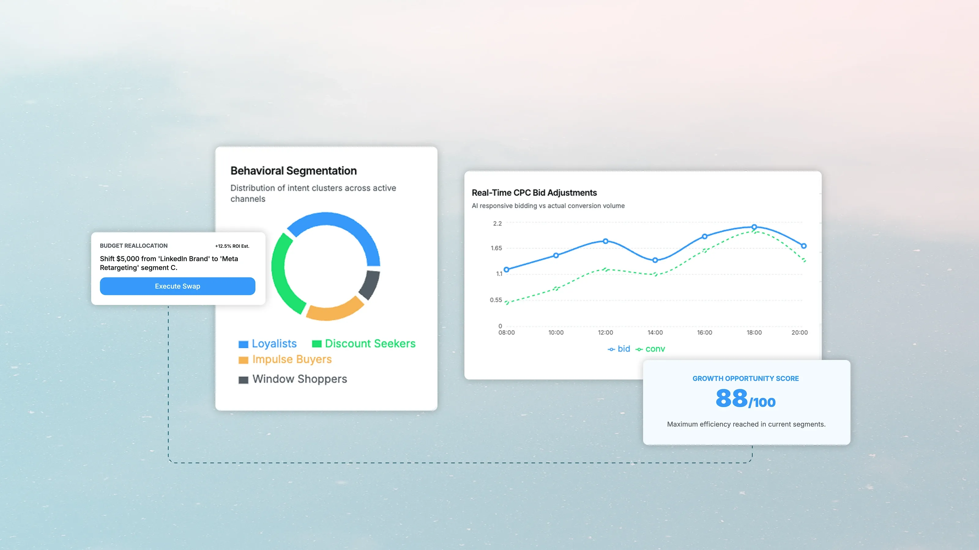 Budget Allocation: shifting funds between channels like Google, Meta, and LinkedIn based on real-time ROI performance.