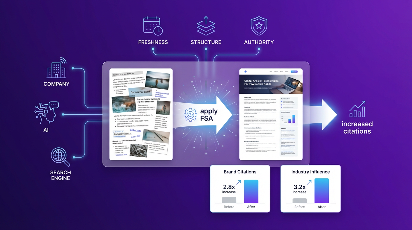 The Freshness, Structure, and Authority (FSA) framework offers a systematic approach to formatting digital assets for machine extraction. Companies hold large volumes of human-generated content in their archives. However, generative engines ignore this established information if its format prevents easy parsing. This framework addresses that visibility problem. Teams apply this methodology to transform older articles into organized citation blocks. They evaluate their top-performing pages and restructure the text into clearly defined segments that answer specific user questions.
