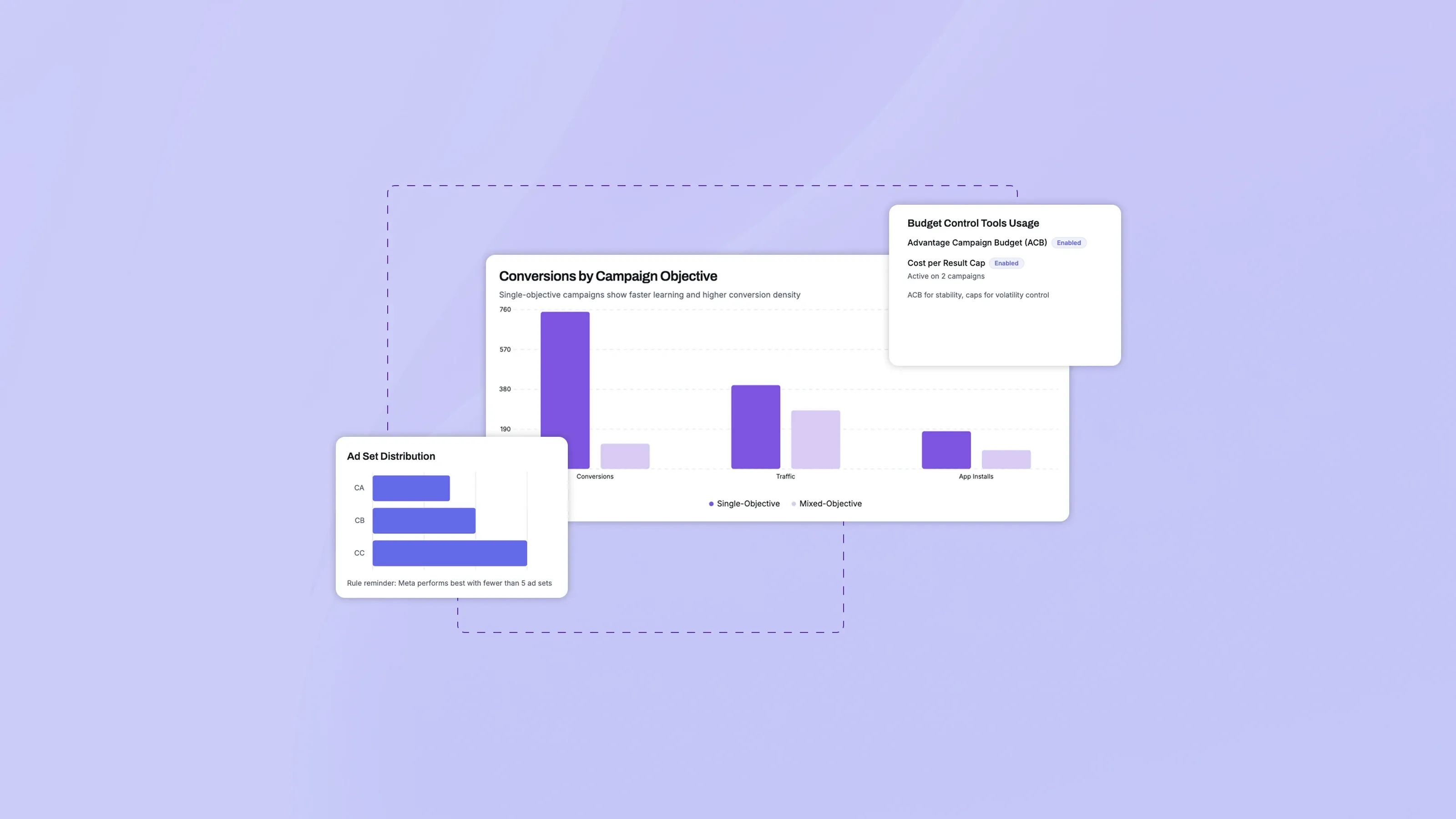 A slim, objective-focused structure feeds clearer data to Meta’s AI, speeding up optimization and preparing us for standout creatives. For a systemized approach to scaling campaigns and optimizing budgets, see How to Build a Performance Marketing Strategy That Scales.